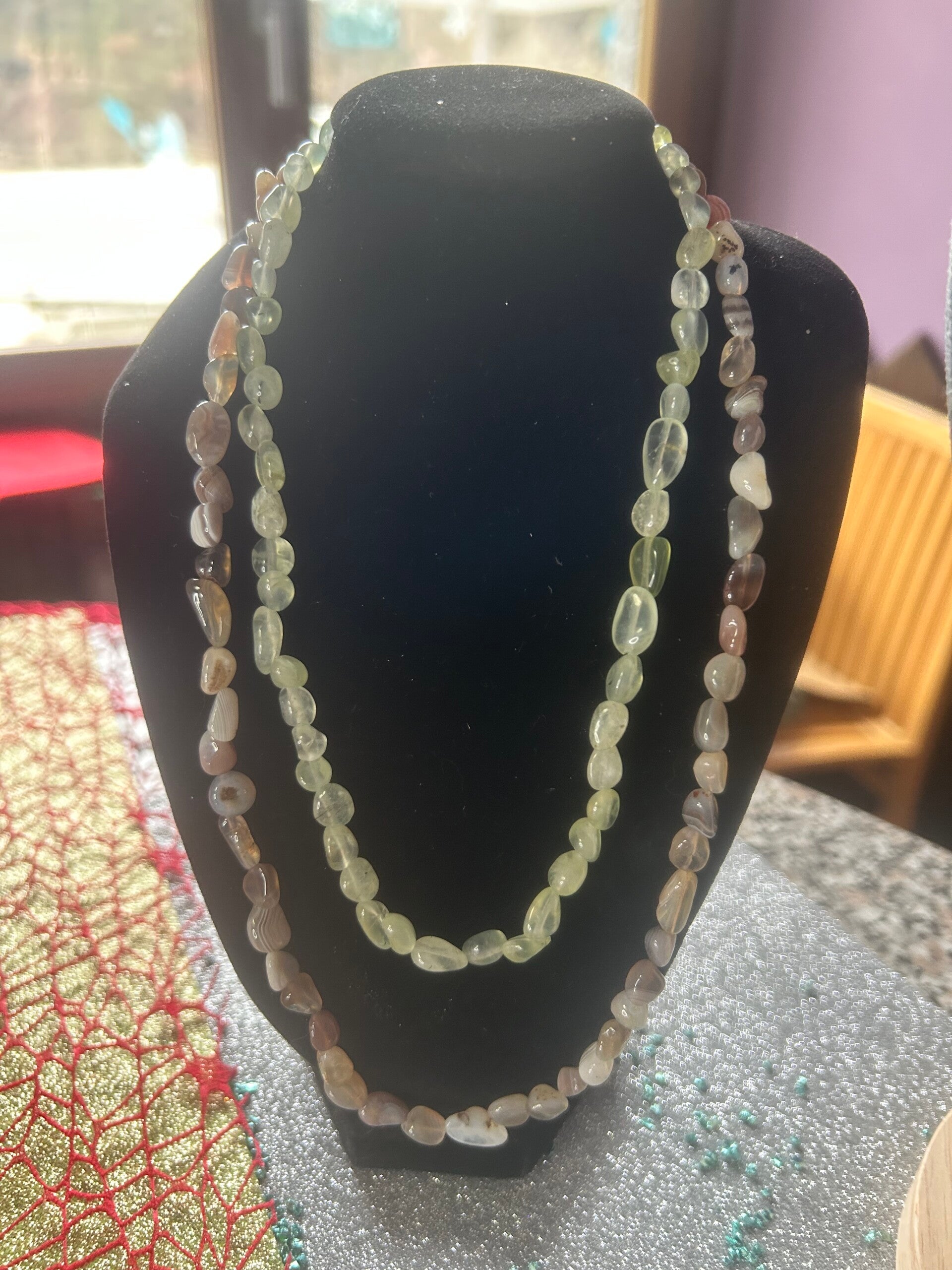 Collana doppia Agata Botswana e prenite